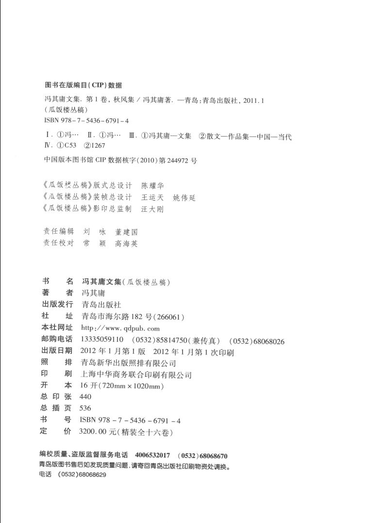 冯其庸文集 第01卷 秋风集_冯其庸著_青岛出版社_2012.01.pdf 135.60 MB