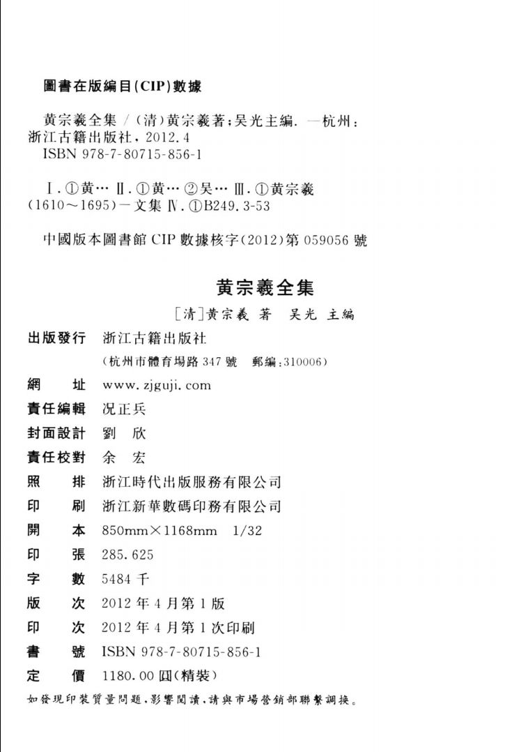 黄宗羲全集(共12册)