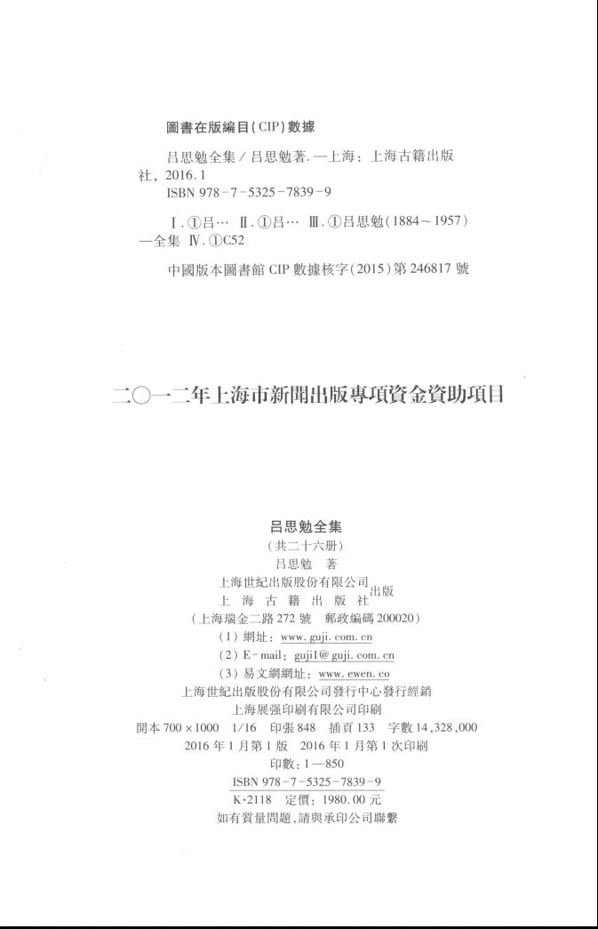 吕思勉全集(共26册)