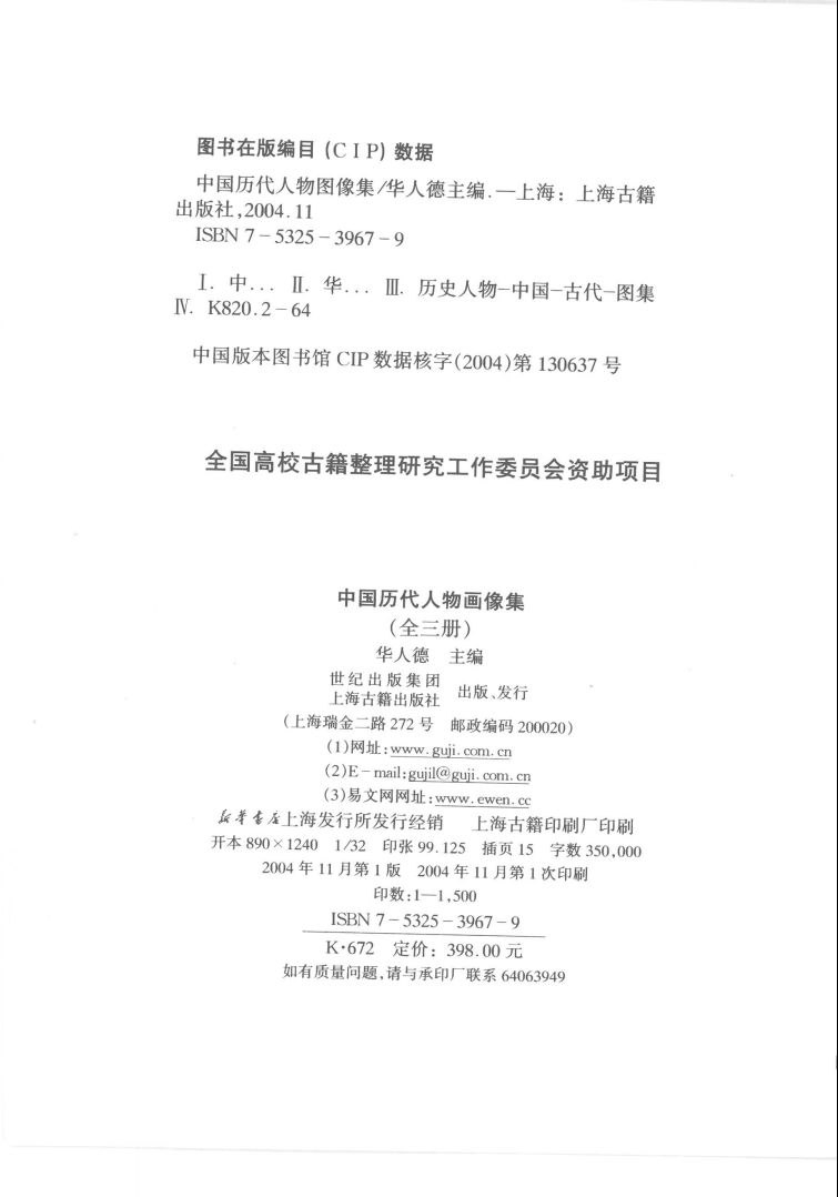 本书是从上古至清末历史人物图像中,选择影响较大、形象较清晰、有一定代表性的3033幅,是目前古代人物图像类工具中收集人数最多的一部。