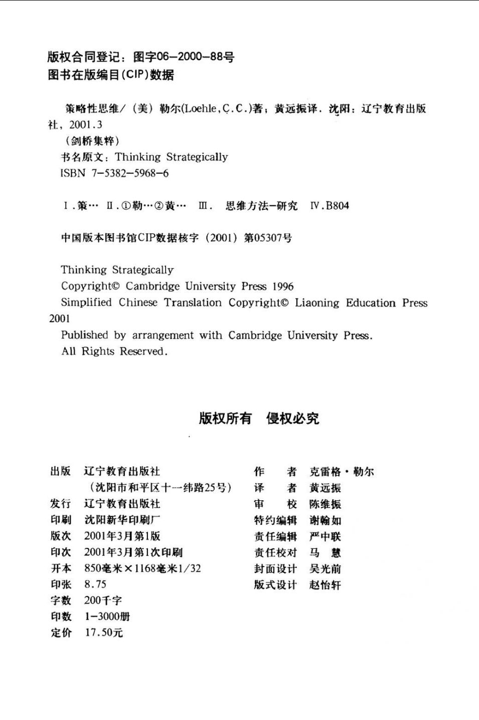 02剑桥集粹 策略性思维:个人和专业发展的有力工具 (美)克雷格·勒尔(Loehle,C.C.)著;黄远振译 辽宁教育出版社, 2001.03_10462709.pdf 109.45 MB