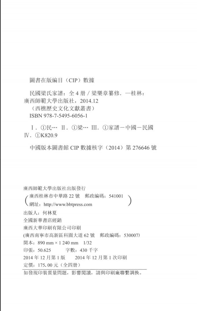 民国梁氏家谱(共4册)