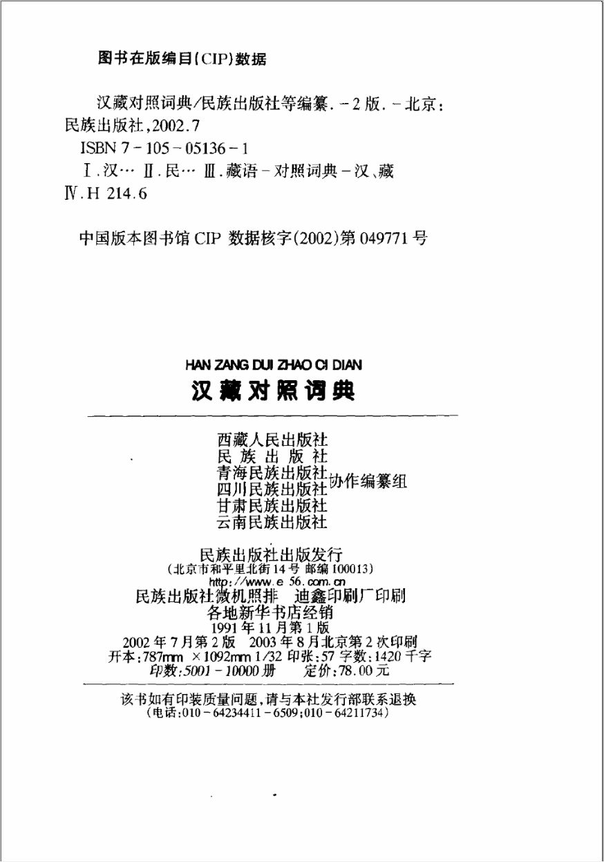 汉藏对照词典(共2册)