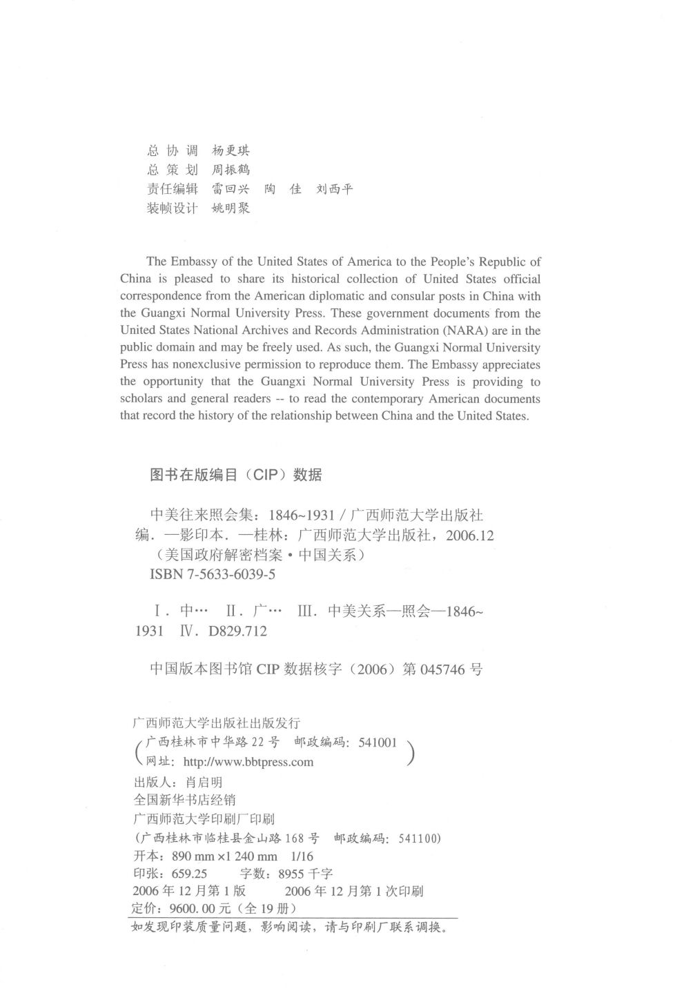 丛书名称:美国政府解密档案中国关系