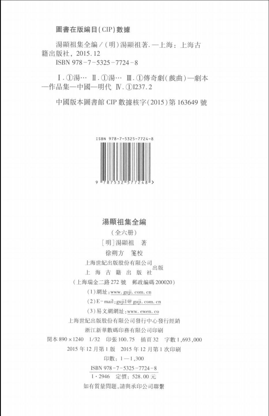 《汤显祖集全编(套装1-6册)》收录明代戏剧大师汤显祖的著作,由诗文和戏曲两部分合成,另有传记、评论作为附录,末附《汤显祖年表》。