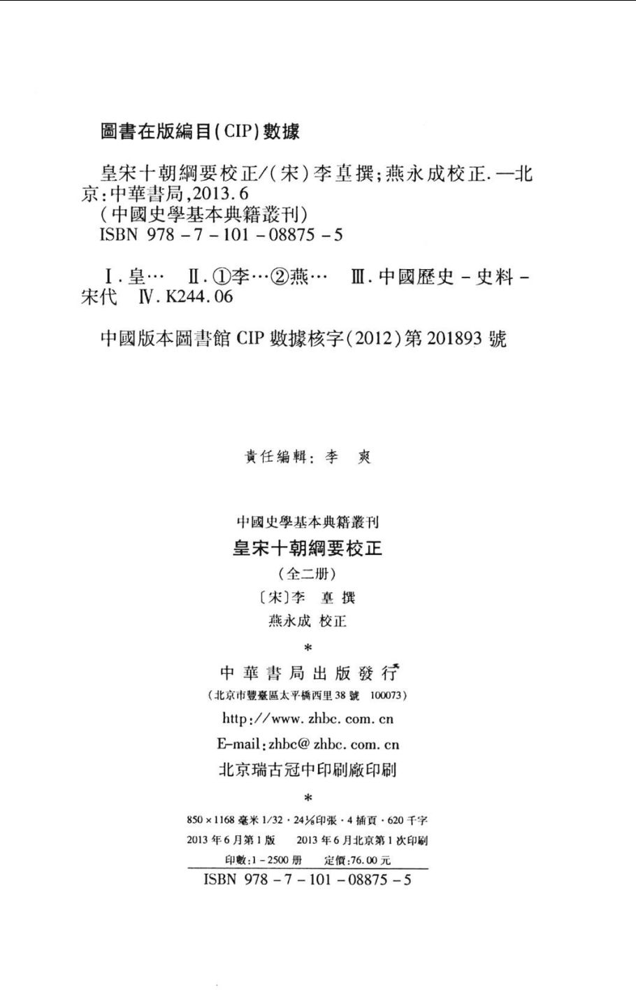 皇宋十朝纲要校正(共2册)
