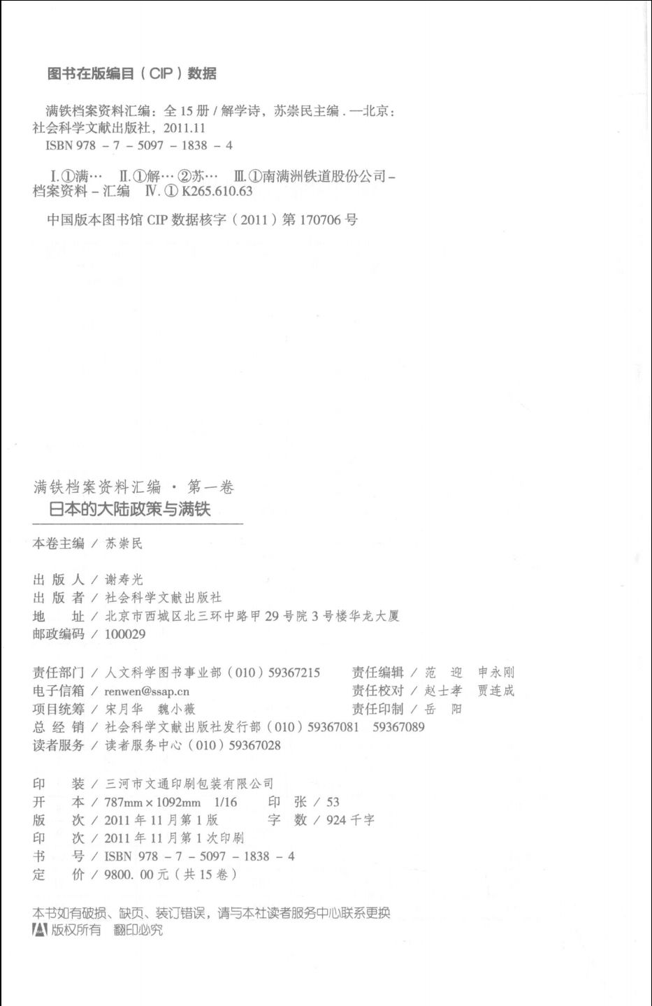 011满铁档案资料汇编 第11卷 满铁与华北开发社会 解学诗本卷主编 北京:社会科学文献出版社 2011_13266234.pdf 106.61 MB
