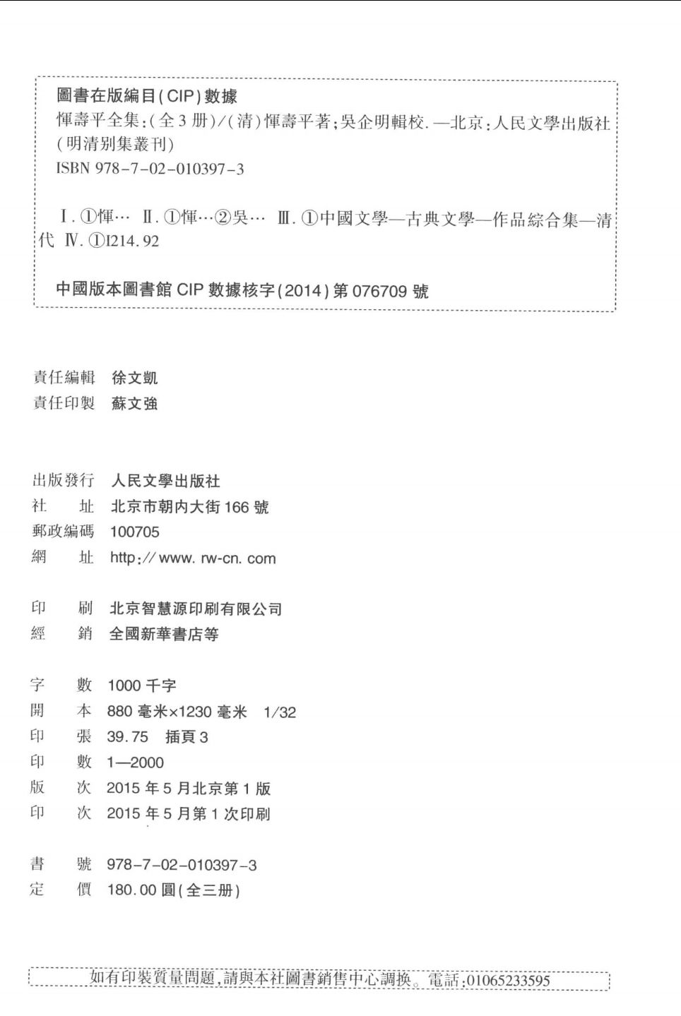 出版社:人民文学出版社 , 2015