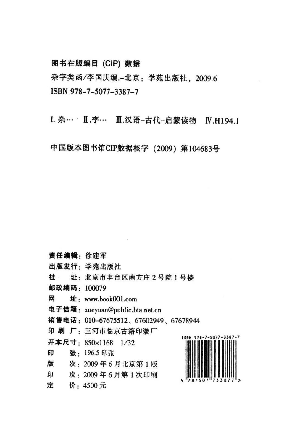 出版社:学苑出版社 2009