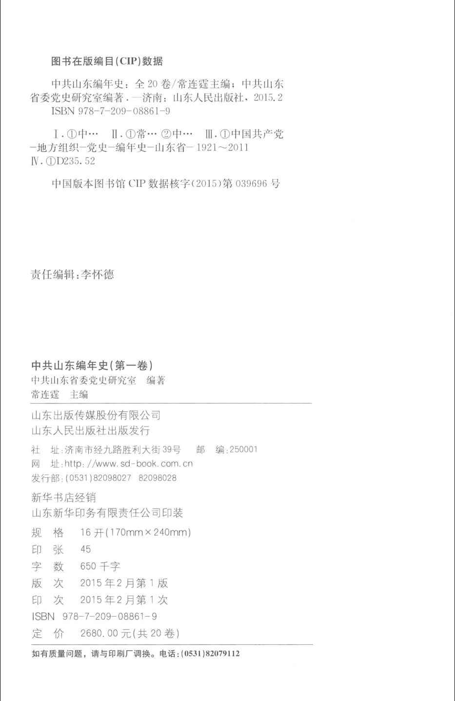 作 者 :常连霆主编;中共山东省委党史研究室编