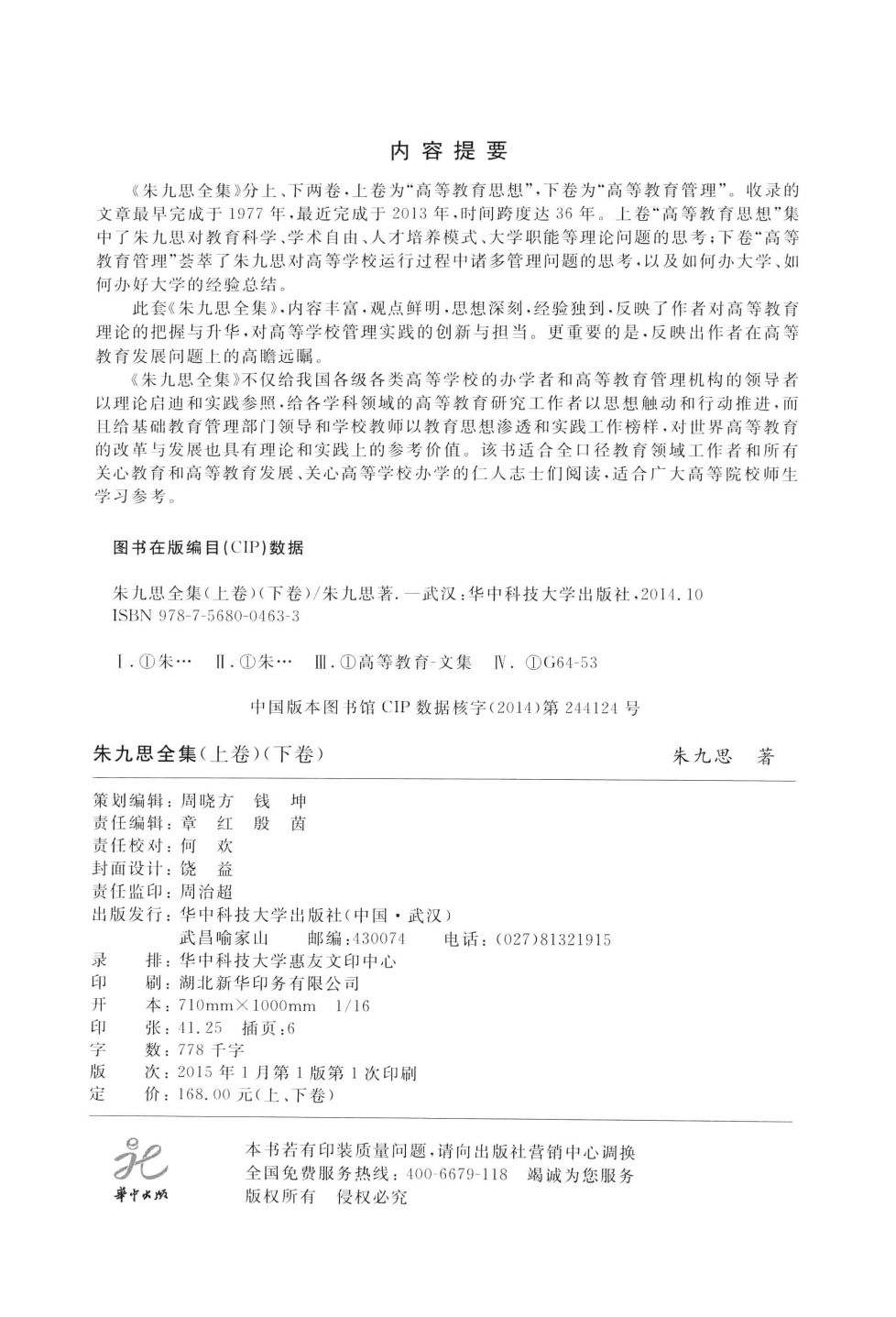 《朱九思全集》(上、下卷)内容丰富,观点鲜明,思想深刻,反映了作者对高等教育理论的把握与升华,对高等学校管理实践的创新与敢当。更重要的是发映出作者在高等教育发展问题上的高瞻远瞩。