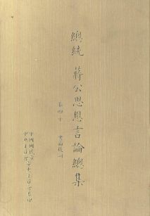 民国五十五年,孝仪曾辑印「将总统思想言论集」,祝公八十纯嘏,距今已十八年,而公之升遐,亦近十年矣。羹墙如见,謦欬莫闻,每展遗编,怆然涕下!因复裒辑五十五年十月至六十四年四月之遗稿,及前此未曾公布之文件,分为专著、演讲、书告、文录、别录、谈话、书面致词等类,并系以总目录、大事年表及论著年表三种,都四十卷,计壹仟五百余万言,敬题曰「先总统蒋公思想言论总集」,并先送请夙以文学侍从先总统蒋公之萧自诚、曹圣芬、唐振楚、楚崧秋、周应龙诸先生分别校阅,俾臻完备。