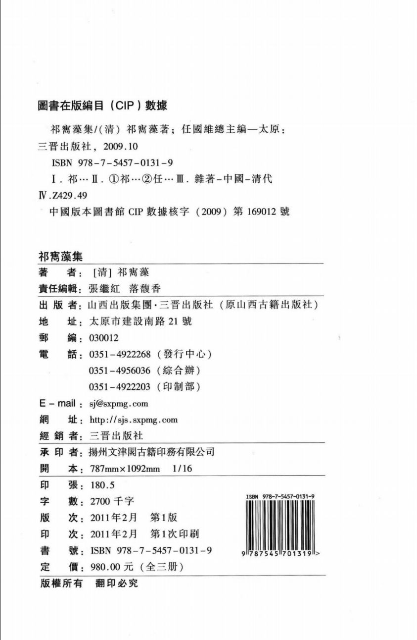 《祁寯藻集》将清代中晚期山西籍著名历史人物——祁寯藻传世的几乎所有著述悉数分类整理、汇集,全书共三册。第一册包括:谱传、日记、信札、马首农言、随笔、杂记及附录,第二册包括:诗词、校勘批注及考证,第三册包括:奏议、题本。该书是迄今为止学界对祁寯藻著述收罗最为全面的古籍整理著作,对于清史研究及进一步深入开展对祁寯藻的相关研究,做了必要的资料准备。该书被列为全国古籍整理专项经费支持项目、国家清史编纂文献丛刊项目,并荣获2010年山西出版传媒集团“十大好书”奖。