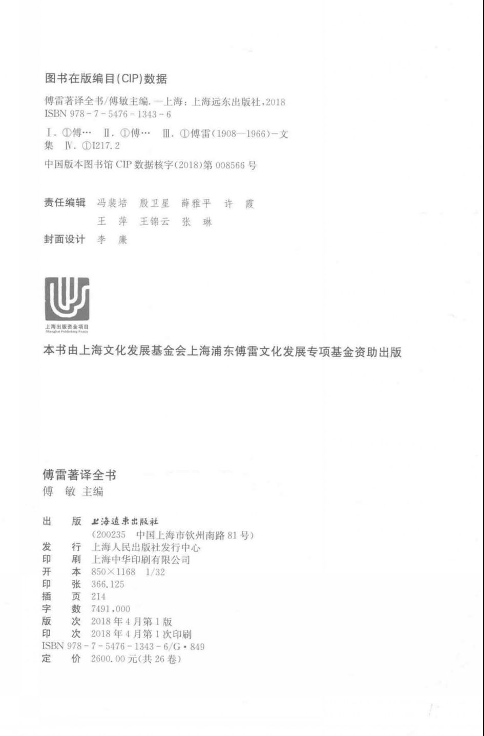 傅雷先生的全部著译,在其身后,经三十余年的努力整理,在《傅雷译文集》与《傅雷文集》两部巨帙的基础上,加上多方发掘,辑录阕佚,现已具备条件慎重编篆一部最终版二十六卷本《傅雷著译全书》。